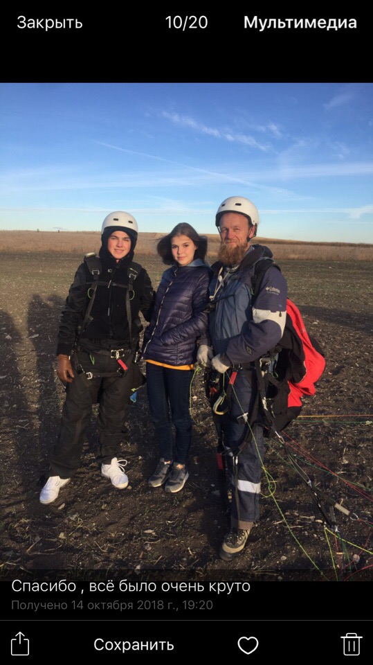 Всем здравствуйте хочу оставить свой отзыв и поделиться впечятлениями! Я на днях полетал на параплане в тандеме с инструктором Вячеславом было очень здорова получил много позитивных эмоций и поверьте оно того стоит!